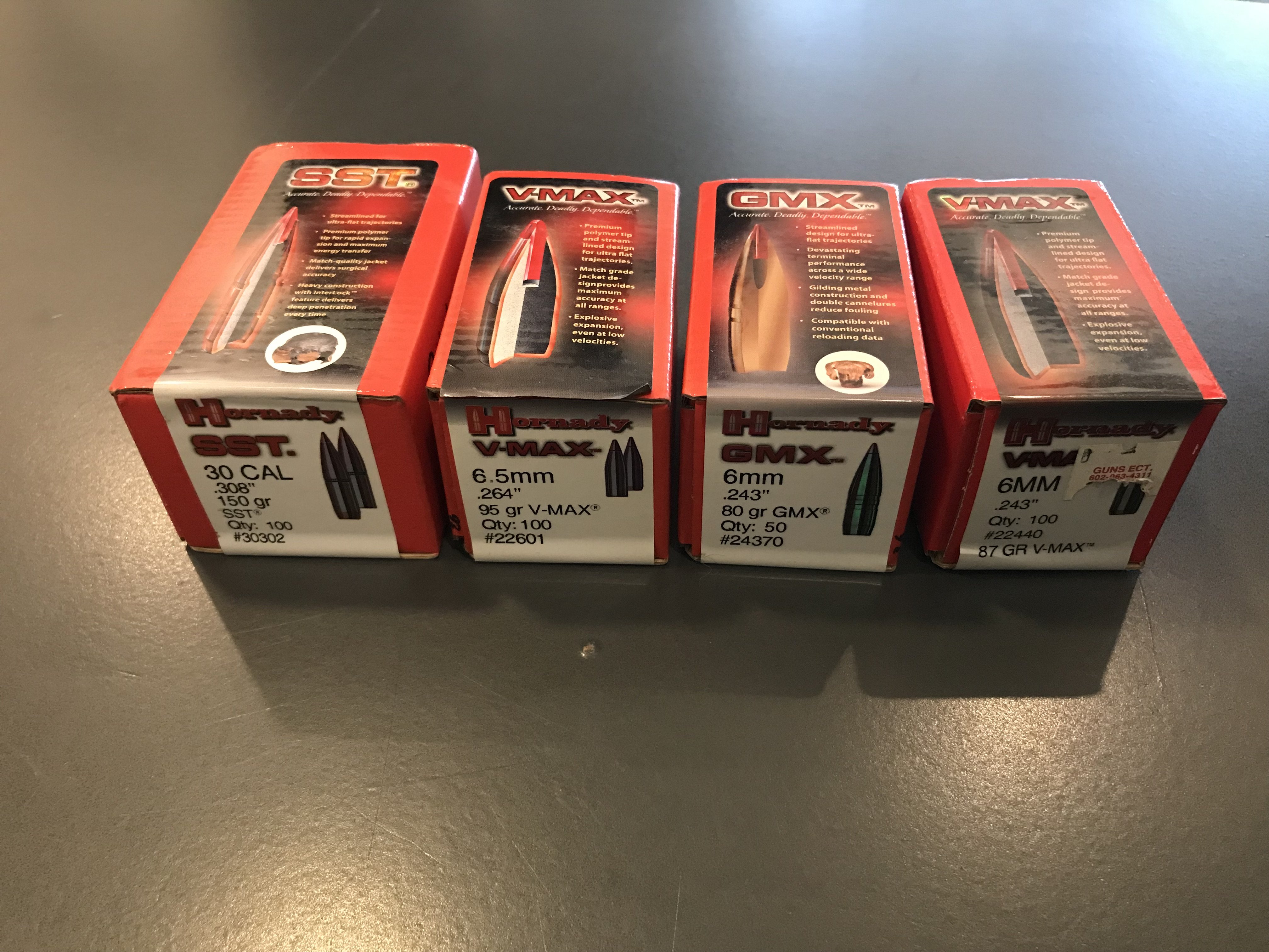 Richie Report post Posted October 25 I have 4 brand new boxes of bullets. 30.00-Hornady 30 cal .308” 150 grain sst qty 100 SOLD 25.00-Hornady 6.5mm .264” 95 grain v-max qty 100 25.00-Hornady 6mm .243” 80 grain GMX qty 50 SOLD 20.00-Hornady 6mm .243 87 grain v-max qty 100 please pm if interested, Thanks Share this post Link to post Share on other sites