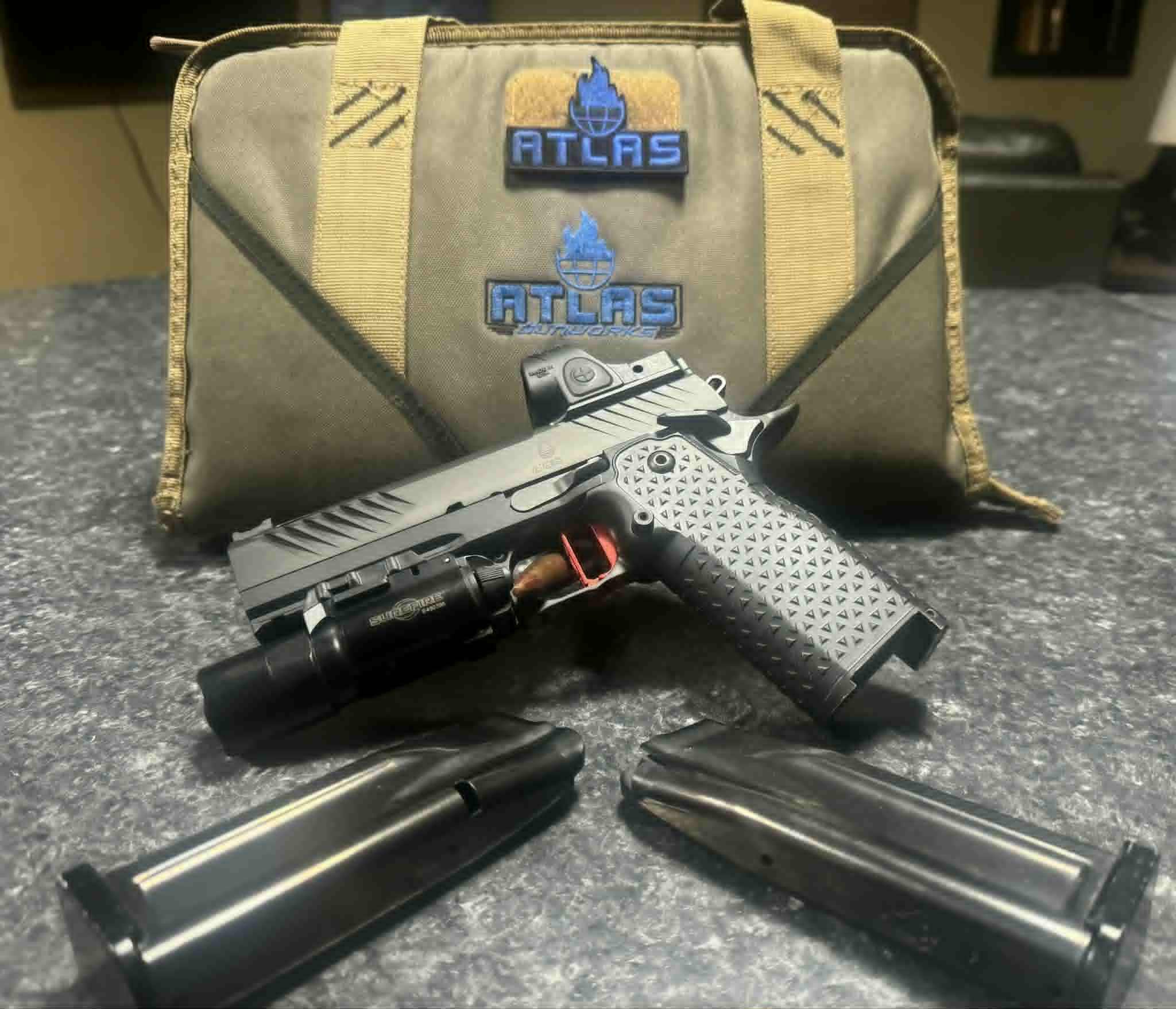SirShagalott Report post Posted Tuesday at 04:27 AM Atlas Ares 4.25" pistol from Atlas Gunworks ($7,000 new), less than 1,000 rounds total, just polished and tuned by the Altas factory and ready for a new owner. Also comes with a Trijicon SRO ($500+) and Surefire X300 Ultra weapon mounted light ($250), the original Atlas case and two flush mount magazines. $6,000 firm for the whole package (not interested in splitting it up). Call DJ 509-760-3676. Share this post Link to post Share on other sites
