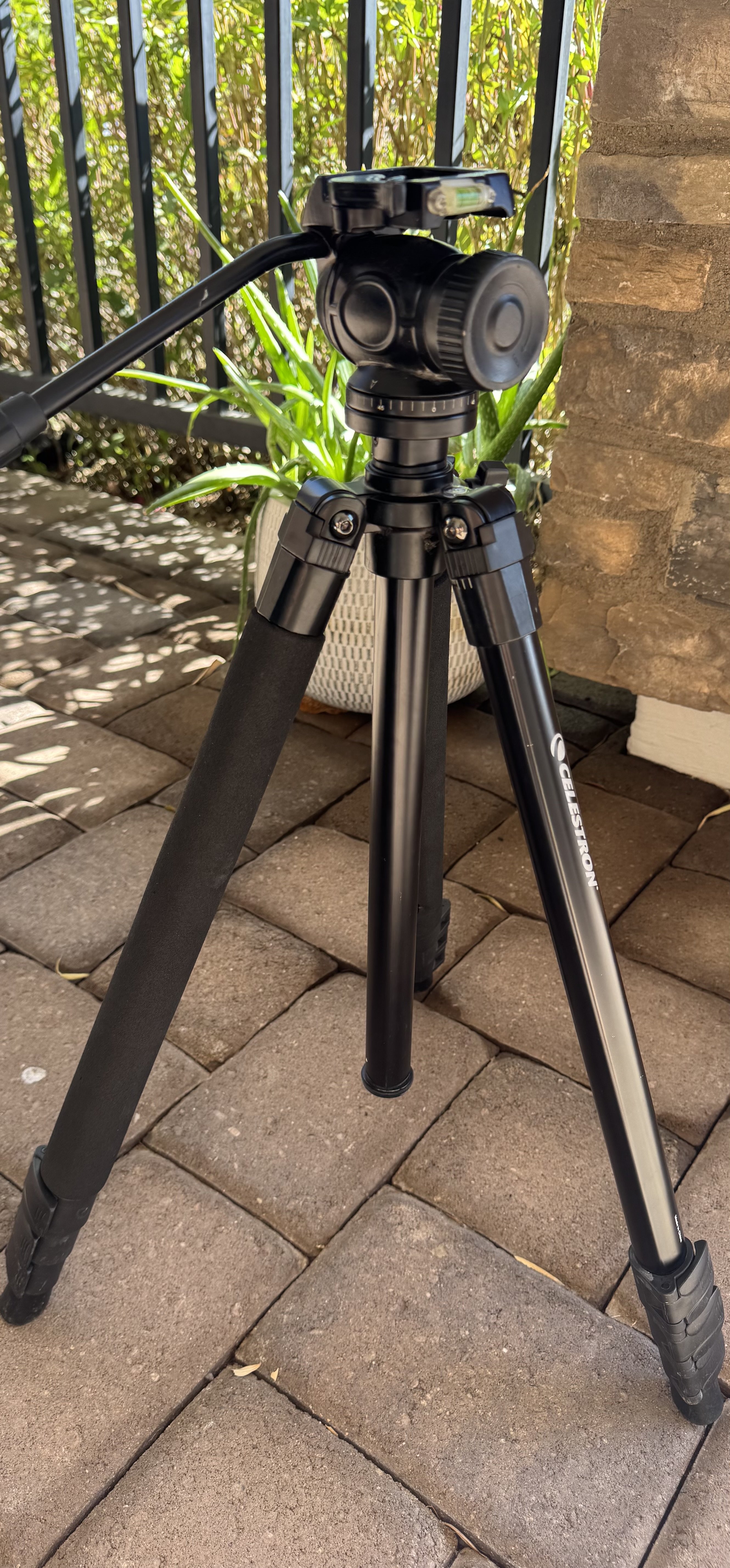 Celestron Tripod Trail Seeker with fluid head. Extends from 22”-69” comes with a bag ,has minor scuffs on it but in really good condition.