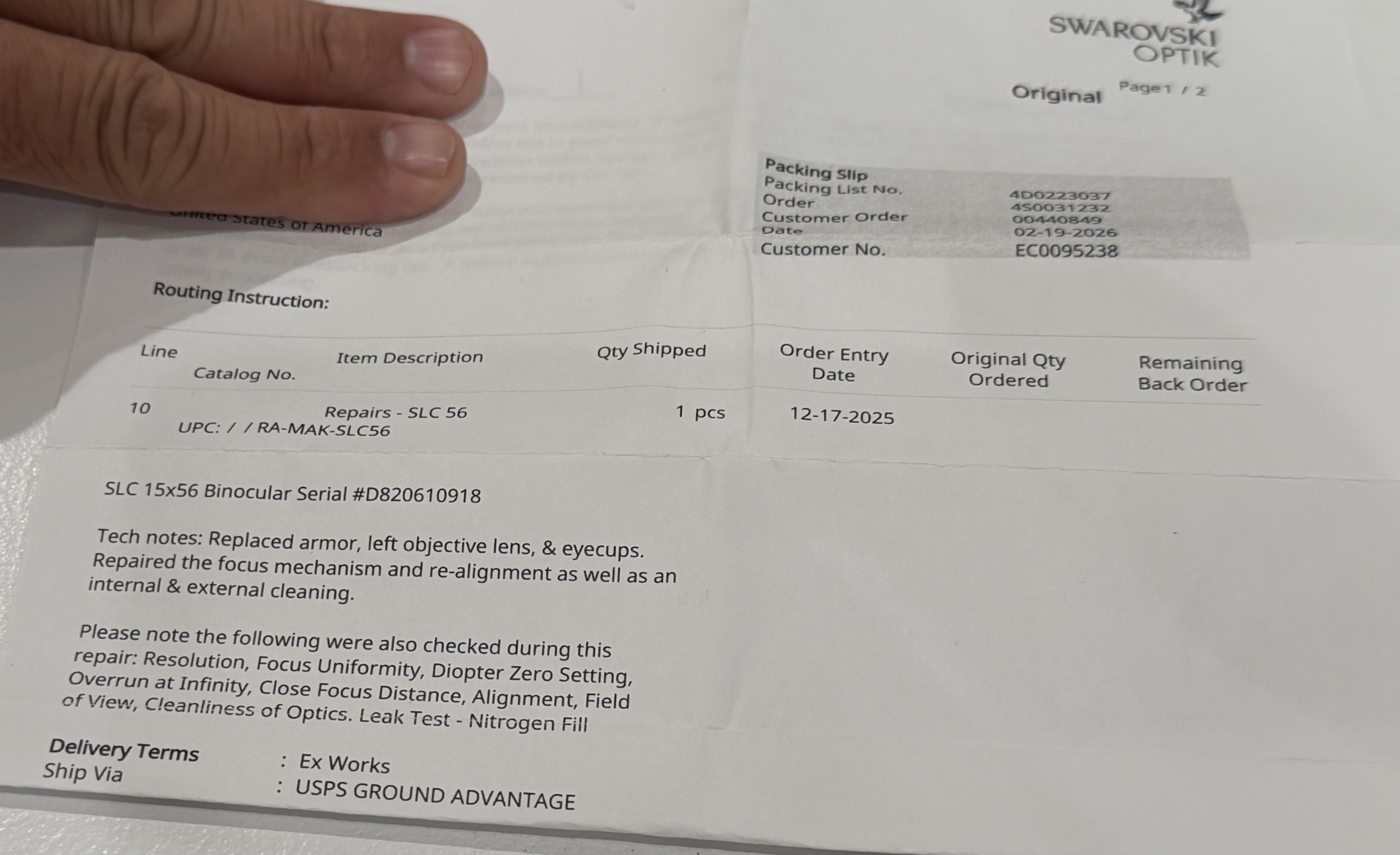 moabbound Report post Posted 16 hours ago I am the second owner of these binoculars. I just got these back from Swarovski, getting a small scratch on the objective fixed. While there they also replaced armor, fixed left objective lens, eye cups, repaired focus mechanism, and realignment as well as an internal and external cleaning. Asking $1500 obo Share this post Link to post Share on other sites
