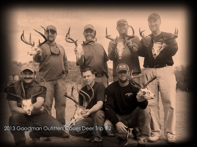 I wanted to share these pictures Ty Goodman from <a href="http://goodmanoutfitters.blogspot.com/">Goodman Outfitters</a> sent me of their second <b>2013 Mexico Coues Deer</b> hunting trip.  The results from this <b>Mexico Coues Deer</b> hunt look pretty dang incredible.  Congrats to <a href="http://goodmanoutfitters.blogspot.com/">Goodman Outfitters</a> and the hunters!<br /><br /><table align="center" cellpadding="0" cellspacing="0" class="tr-caption-container" style="margin-left: auto; margin-right: auto; text-align: center;"><tbody><tr><td style="text-align: center;"><a href="http://1.bp.blogspot.com/-195pfGGuTNk/UQcpQcVWlpI/AAAAAAAADxw/N8heiqKY1ks/s1600/2013-Giant-Coues-with-Goodman-Outfitters.jpg" imageanchor="1" style="margin-left: auto; margin-right: auto;"><img border="0" height="300" src="http://1.bp.blogspot.com/-195pfGGuTNk/UQcpQcVWlpI/AAAAAAAADxw/N8heiqKY1ks/s400/2013-Giant-Coues-with-Goodman-Outfitters.jpg" width="400" /></a></td></tr><tr><td class="tr-caption" style="text-align: center;">A great coues buck killed on this trip.  They dubbed him "Narels"!</td></tr></tbody></table><br /><table align="center" cellpadding="0" cellspacing="0" class="tr-caption-container" style="margin-left: auto; margin-right: auto; text-align: center;"><tbody><tr><td style="text-align: center;"><a href="http://3.bp.blogspot.com/-r_GXG7BYY1A/UQcpT323sNI/AAAAAAAADx4/4hdrOApBOhI/s1600/Mexico-2013-Goodman-Outfiters.jpg" imageanchor="1" style="margin-left: auto; margin-right: auto;"><img border="0" height="300" src="http://3.bp.blogspot.com/-r_GXG7BYY1A/UQcpT323sNI/AAAAAAAADx4/4hdrOApBOhI/s400/Mexico-2013-Goodman-Outfiters.jpg" width="400" /></a></td></tr><tr><td class="tr-caption" style="text-align: center;">A neat shot of all of the coues bucks they killed on this trip.</td></tr></tbody></table>