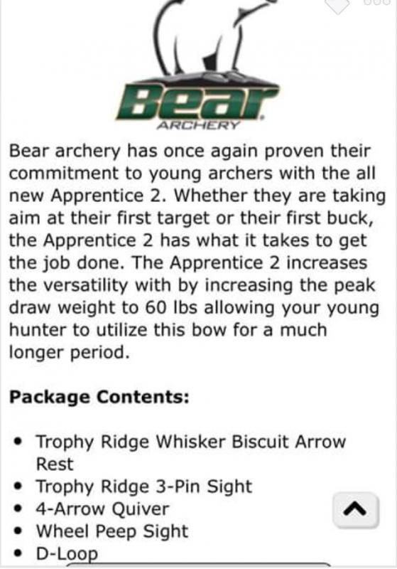 hunter01 Report post Posted March 3, 2018 Selling my daughters back up bow, $170.00. Really good entry level bow. Prob need to replace string later this year but still in good shooting condition. A couple years old, shot very little after being set up as a back Up bow. See pics and specs in attached info. In Tucson, prefer FTF sale, Will ship on your dime. In Tucson, plz text at: 520-954-3403. Andy Share this post Link to post Share on other sites